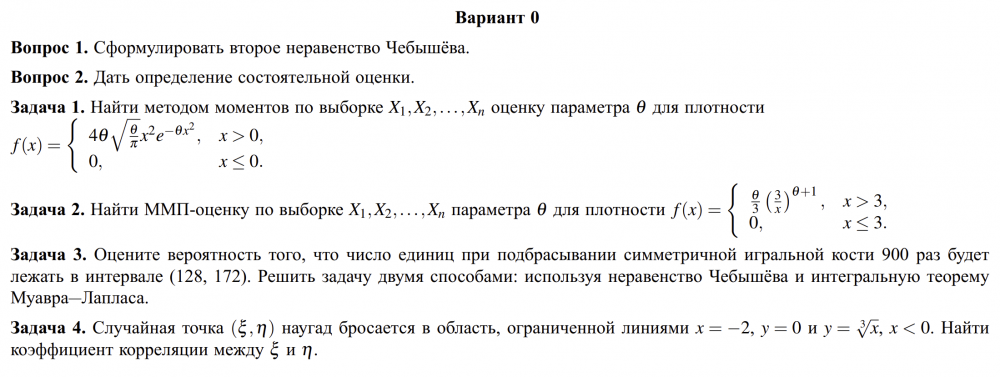 Для студентов МГТУ им. Н.Э.Баумана по предмету Теория вероятностей и математическая статистика (ТВиМС)Полностью разобранные задачи из варианта третьего рубежного контроляПолностью разобранные задачи из варианта третьего рубежного контроля