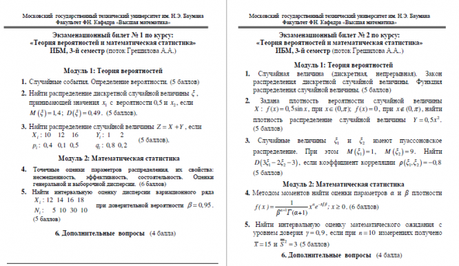 Для студентов МГТУ им. Н.Э.Баумана по предмету Теория вероятностей и математическая статистикаТеория вероятности билеты экзамена 2018 годТеория вероятности билеты экзамена 2018 год