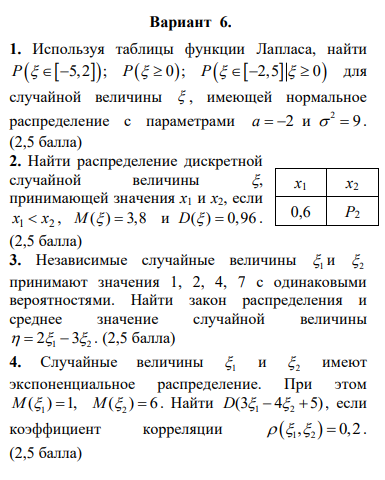 Для студентов МГТУ им. Н.Э.Баумана по предмету Теория вероятностей и математическая статистика (ТВиМС)Рубежный контрольРубежный контроль