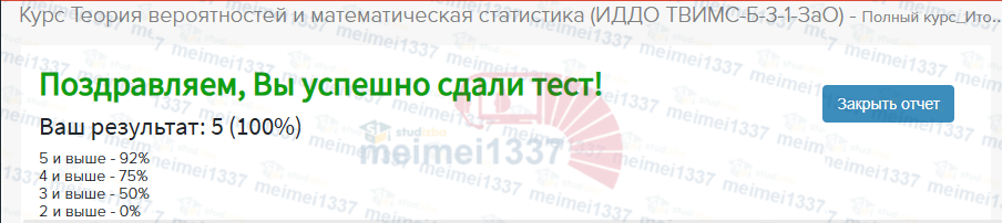 Курс Теория вероятностей и математическая статистика - база ответов к тестам: