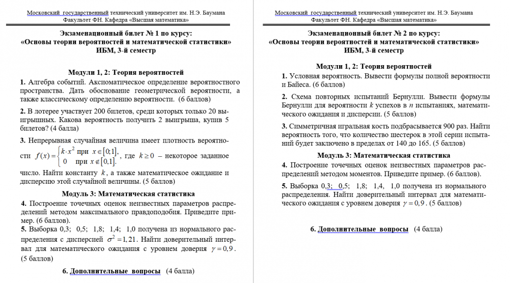 Для студентов МГТУ им. Н.Э.Баумана по предмету Теория вероятностей и математическая статистикаТеорияТеория