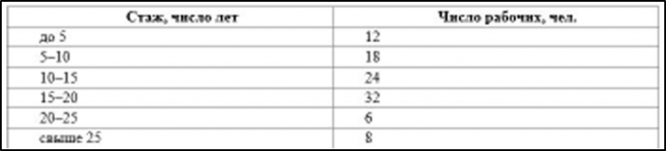 На основе этих данных нужно вычислить средний стаж рабочих завода, средний квадрат отклонений (дисперсию), среднее квадратическое отклонение.