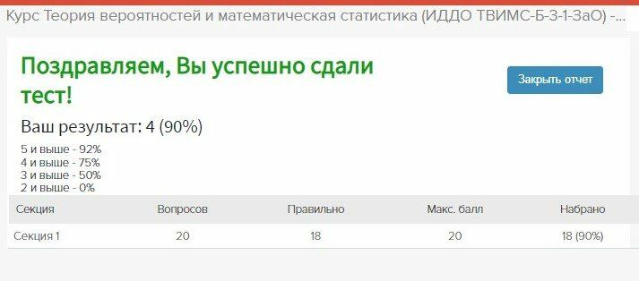🙋♂️🙋♂️🙋♂️ Коллекция ответов на 90 % Теория вероятностей и математическая статистика итоговый тест 20 вопросов ВУЗ ПРОМЕТЕЙ