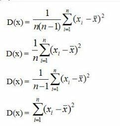 Дана выборка X = (x1, x2,...xn). Несмещенную оценку дисперсии этой выборки можно найти по формуле: