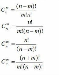 Число сочетаний из n элементов по m вычисляется по формуле:
