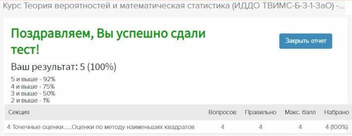 🙋♂️🙋♂️🙋♂️ Коллекция ответов на 100 % Теория вероятностей и математическая статистика (Точечные оценки.... Оценки по методу наименьших квадратов).