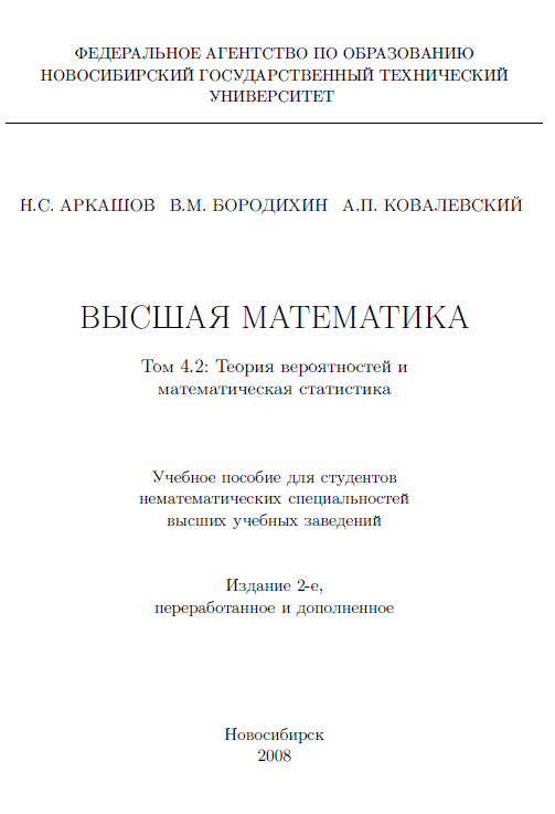 Главная » Учебные материалы » Теория вероятностей и математическая статистика (ТВиМС) » Книги » НГТУ » 4 семестр » Аркашов Н.С. - Высшая математика. Теория вероятностей и математическая статистика