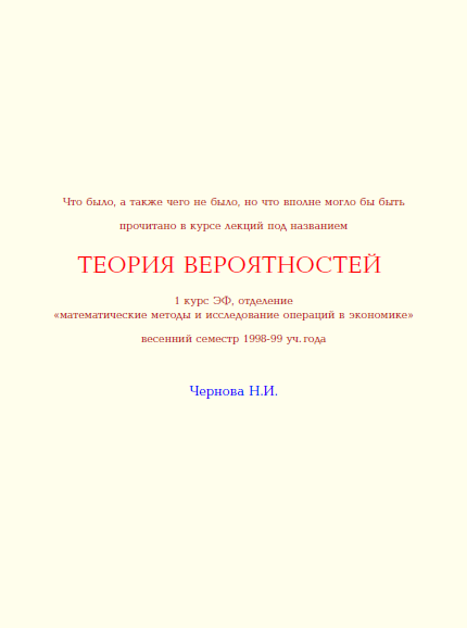 Для студентов НИУ «МЭИ» по предмету Теория вероятностей и математическая статистика (ТВиМС)Чернова Н.И. - Теория вероятностейЧернова Н.И. - Теория вероятностей