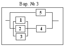 • Задача 3. Задана структурная схема надежности системы, состоящей из пяти элементов. Событие Аi - отказ i-го элемента за некоторый промежуток времени. Вероятности безотказной работы элементов заданы: P(Ai)=0,95; i=1,3,5; P(Aj)=0,95; j=2,4. Событие А состоит в безотказной работе всей системы за рассматриваемый промежуток времени (события Аi независимы в совокупности). Требуется: 1) выразить событие А через Ai или Аi (i=1,2,3,4,5); 2) найти вероятность P(A) безотказной работы системы.