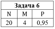 • Задача 6. В отдел технического контроля поступает партия, содержащая N изделий, среди которых имеется M бракованных. Контролер для контроля отбирает 3 изделия, при этом в бракованном изделии он обнаруживает брак с вероятностью P. Партия бракуется, если среди трех отобранных для проверки изделий обнаружено хотя бы одно бракованное изделие. Найти вероятность того, что данная партия изделий будут забракована.