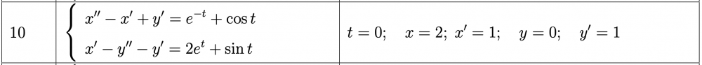 Проинтегрировать следующие системы линейных дифференциальных уравнений при заданных