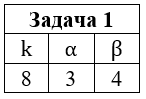 • Задача 1. Одновременно подбрасывают две игральные кости. В вариантах 1-10 найти вероятность того, что сумма выпавших очков: 1) равна k; 2) меньше k+1; 3) больше k-1; 4) заключена в промежутке [α;β]. В вариантах 11-30 найти вероятность того, что произведение выпавших очков: 1) равна k; 2) меньше k+1; 3) больше k-1; 4) заключена в промежутке [α;β].