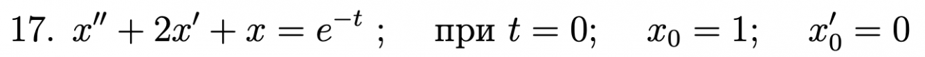 Проинтегрировать следующие линейные дифференциальные уравнения при заданных начальных