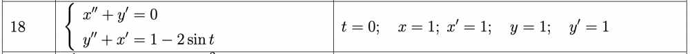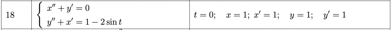Проинтегрировать следующие системы линейных дифференциальных уравнений при заданных