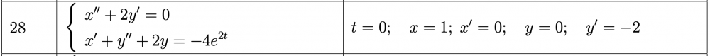Проинтегрировать следующие системы линейных дифференциальных уравнений при заданных