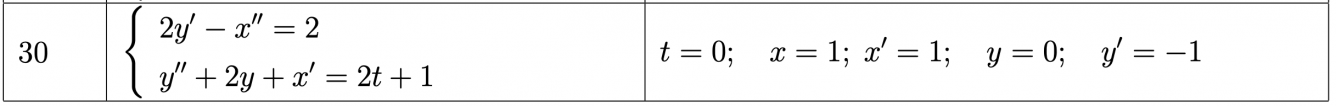 Проинтегрировать следующие системы линейных дифференциальных уравнений при заданных