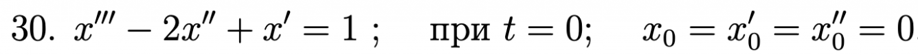 Проинтегрировать следующие линейные дифференциальные уравнения при заданных начальных