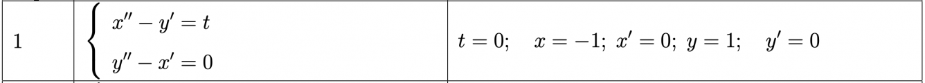 Проинтегрировать следующие системы линейных дифференциальных уравнений при заданных