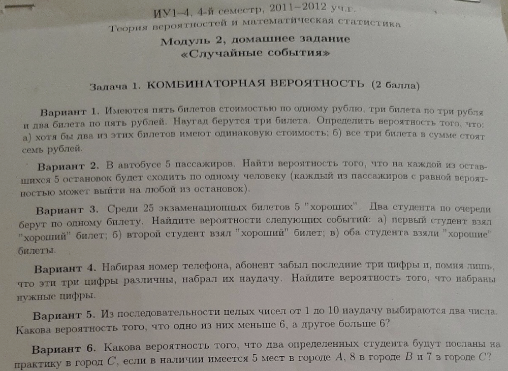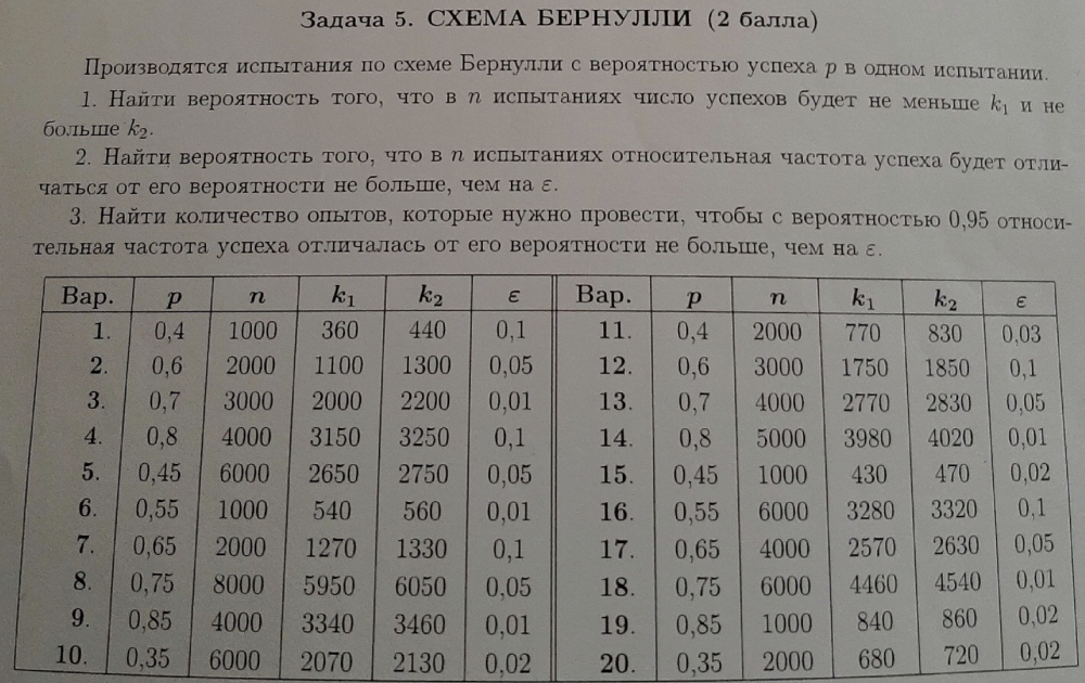 ДЗ 2: Типовик Тервер 5 вариант вариант 5