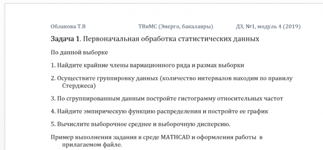 Для студентов МГТУ им. Н.Э.Баумана по предмету Теория вероятностей и математическая статистика (ТВиМС)Первоначальная обработка статистических данныхПервоначальная обработка статистических данных