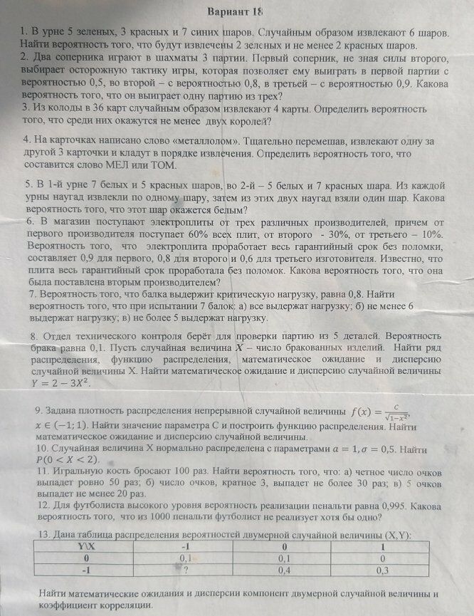 ДЗ 1: Типовик по терверу 1-13 задания вариант 18