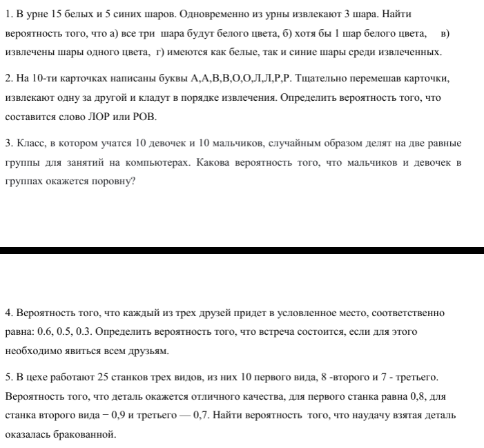Для студентов МГТУ им. Н.Э.Баумана по предмету Теория вероятностей и математическая статистикаПервые семь задач, 2020Первые семь задач, 2020