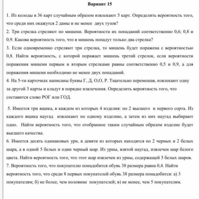 ДЗ 1: Основы теор. вер ДЗ 1 7 задач(условие ниже) вариант 15