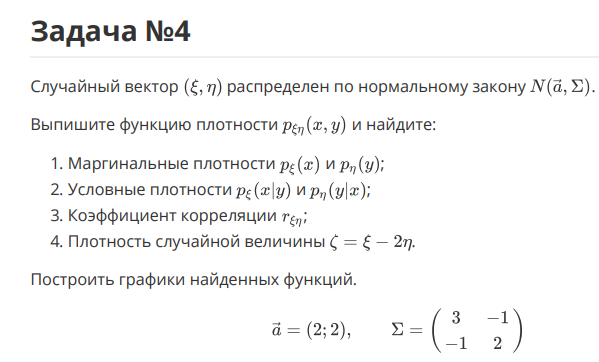 ДЗ 1: Вариант 4 - ДЗ №1 "Случайные вектора" - 4 задачи вариант 4
