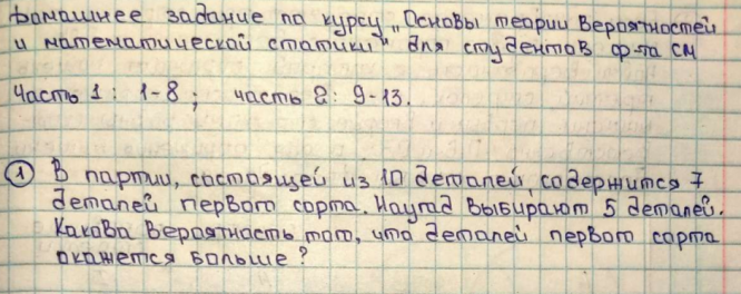 Для студентов МГТУ им. Н.Э.Баумана по предмету Теория вероятностей и математическая статистика (ТВиМС)Вариант 11 - ДЗ №1 - Часть 1 - 8 задачВариант 11 - ДЗ №1 - Часть 1 - 8 задач