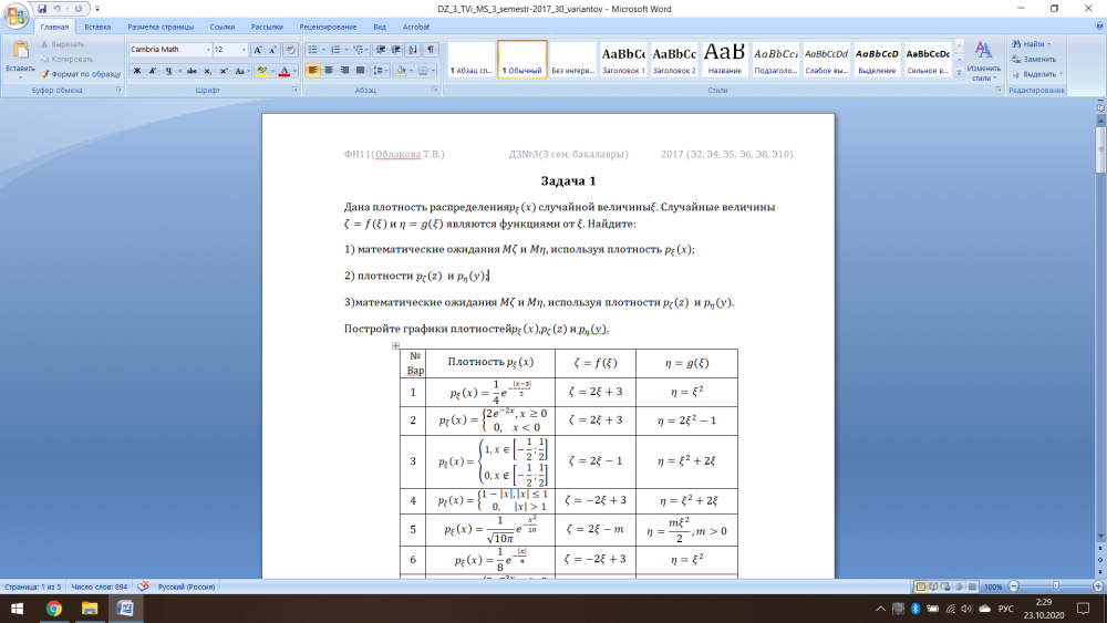 Для студентов МГТУ им. Н.Э.Баумана по предмету Теория вероятностей и математическая статистика (ТВиМС)Дз-1(Энерго бак)Дз-1(Энерго бак)