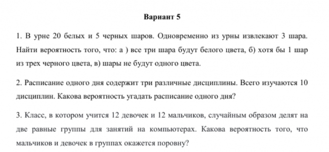 ДЗ 1: ДЗ1 Тервер Зачтено, 9 задач вариант 5