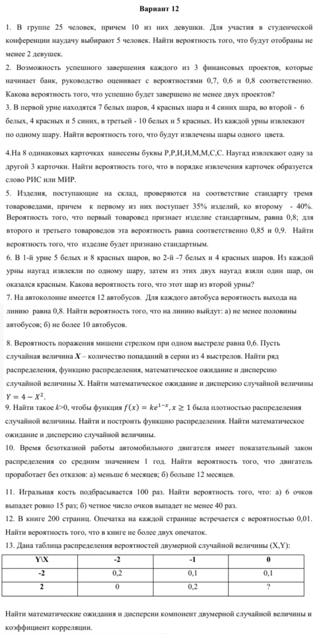 ДЗ 2: Тервер ДЗ (задачи 8-10, 13) вариант 12