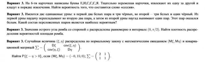 ДЗ 2: ДЗ-2 по случайным событиям, величинам и векторам вариант 3
