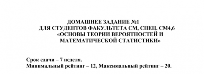Для студентов МГТУ им. Н.Э.Баумана по предмету Теория вероятностей и математическая статистика (ТВиМС)дз № 1 для СМ4,6 лектор Меженнаядз № 1 для СМ4,6 лектор Меженная