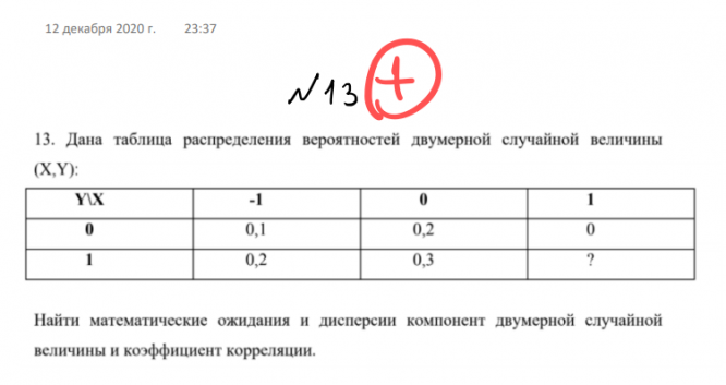 Для студентов МГТУ им. Н.Э.Баумана по предмету Теория вероятностей и математическая статистика (ТВиМС)Вариант 1 - ДЗ №2 - Задачи 8-13Вариант 1 - ДЗ №2 - Задачи 8-13