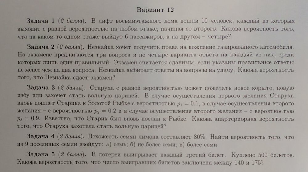 Для студентов МГТУ им. Н.Э.Баумана по предмету Теория вероятностей и математическая статистика (ТВиМС)Дз1Дз1
