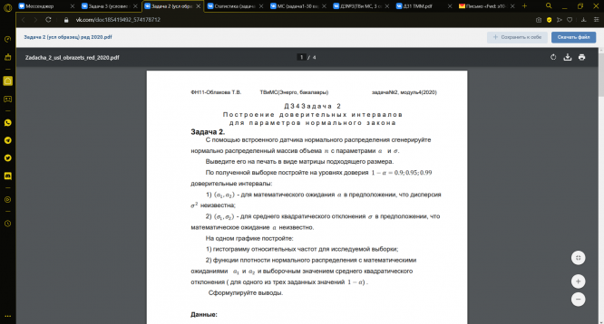 Для студентов МГТУ им. Н.Э.Баумана по предмету Теория вероятностей и математическая статистика (ТВиМС)Второй ТиповикВторой Типовик
