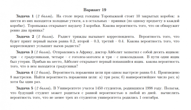 Для студентов МГТУ им. Н.Э.Баумана по предмету Теория вероятностей и математическая статистика (ТВиМС)Типовой расчет №1Типовой расчет №1