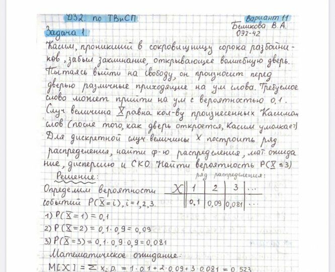 Для студентов МГТУ им. Н.Э.Баумана по предмету Теория вероятностей и математическая статистика (ТВиМС)Типовой расчетТиповой расчет