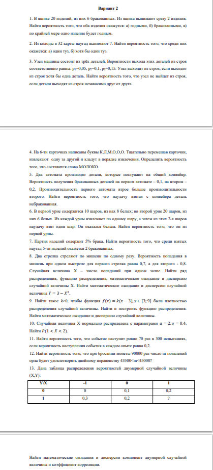 Для студентов МГТУ им. Н.Э.Баумана по предмету Теория вероятностей и математическая статистика (ТВиМС)Вариант 2 - ДЗ №1,2Вариант 2 - ДЗ №1,2