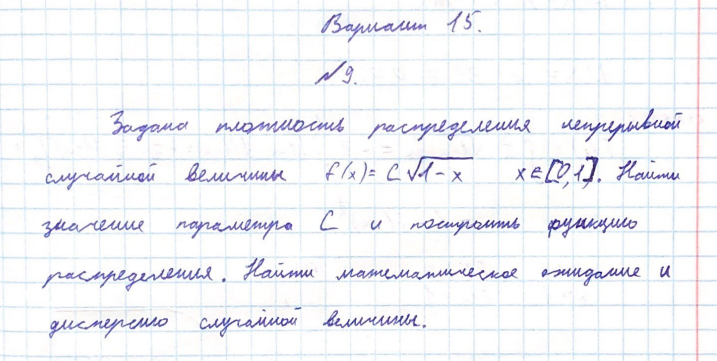 Для студентов МГТУ им. Н.Э.Баумана по предмету Теория вероятностей и математическая статистика (ТВиМС)Вариант 15 - ДЗ №1 - Часть 2 - Задачи 9-13Вариант 15 - ДЗ №1 - Часть 2 - Задачи 9-13