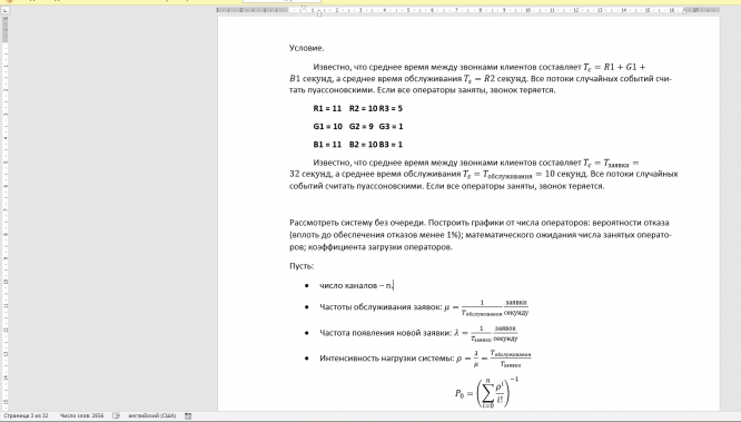 1. Рассмотреть систему без очереди. Построить графики от числа операторов: вероятности отказа (вплоть до обеспечения отказов менее 1%); математического ожидания числа занятых операторов; коэффициента загрузки операторов. 3