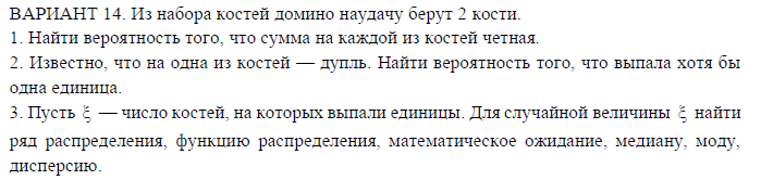 Для студентов МГТУ им. Н.Э.Баумана по предмету Теория вероятностей и математическая статистика (ТВиМС)Домашнее задание 1 (Вариант №14)Домашнее задание 1 (Вариант №14)