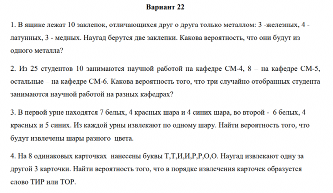 ДЗ 1: Дз по теор веру. Вариант 22(ФН-2) вариант 22