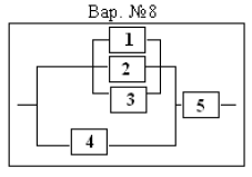• Задача 3. Задана структурная схема надежности системы, состоящей из пяти элементов. Событие Аi - отказ i-го элемента за некоторый промежуток времени. Вероятности безотказной работы элементов заданы: P(Ai)=0,95; i=1,3,5; P(Aj)=0,95; j=2,4. Событие А состоит в безотказной работе всей системы за рассматриваемый промежуток времени (события Аi независимы в совокупности). Требуется: 1) выразить событие А через Ai или Аi (i=1,2,3,4,5); 2) найти вероятность P(A) безотказной работы системы.