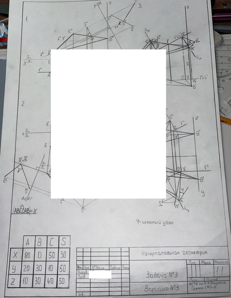 Домашнее задание по Начертательной геометрии (для всех факультетов, кроме ИУ1, 2, 3, 5, 6, РК6, МТ9)
