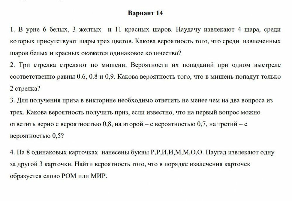 Вариант 14 - ДЗ №1 - Теория вероятностей - Часть 1 «случайные события» - 8 Задач
