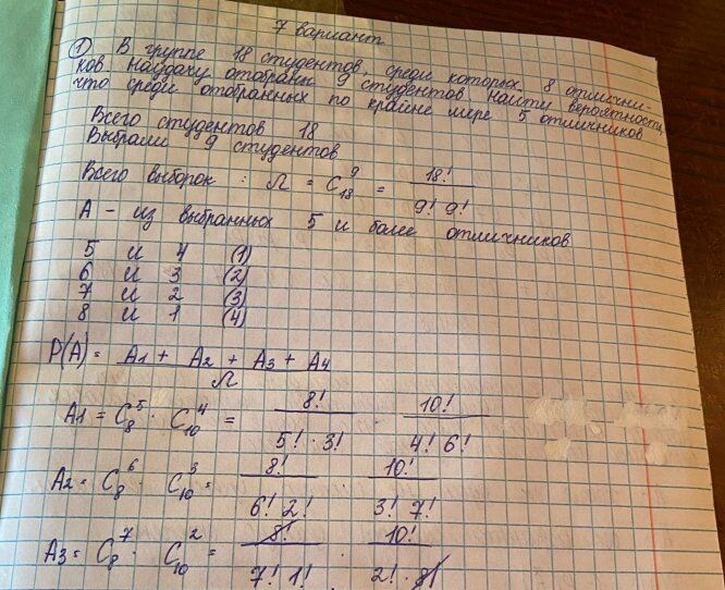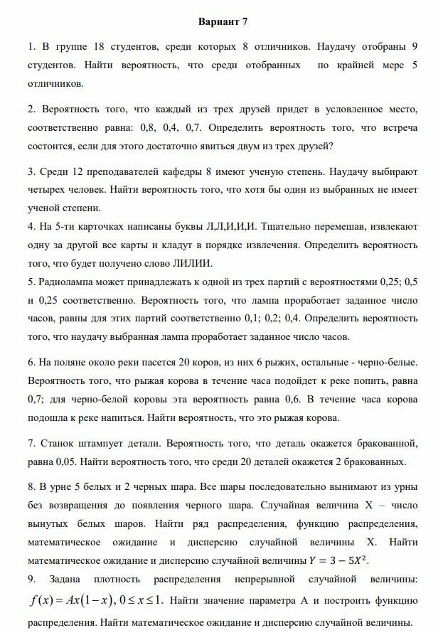 Вариант 7 - ДЗ №1 - Теория вероятностей - Часть 1 «случайные события» - 9 Задач