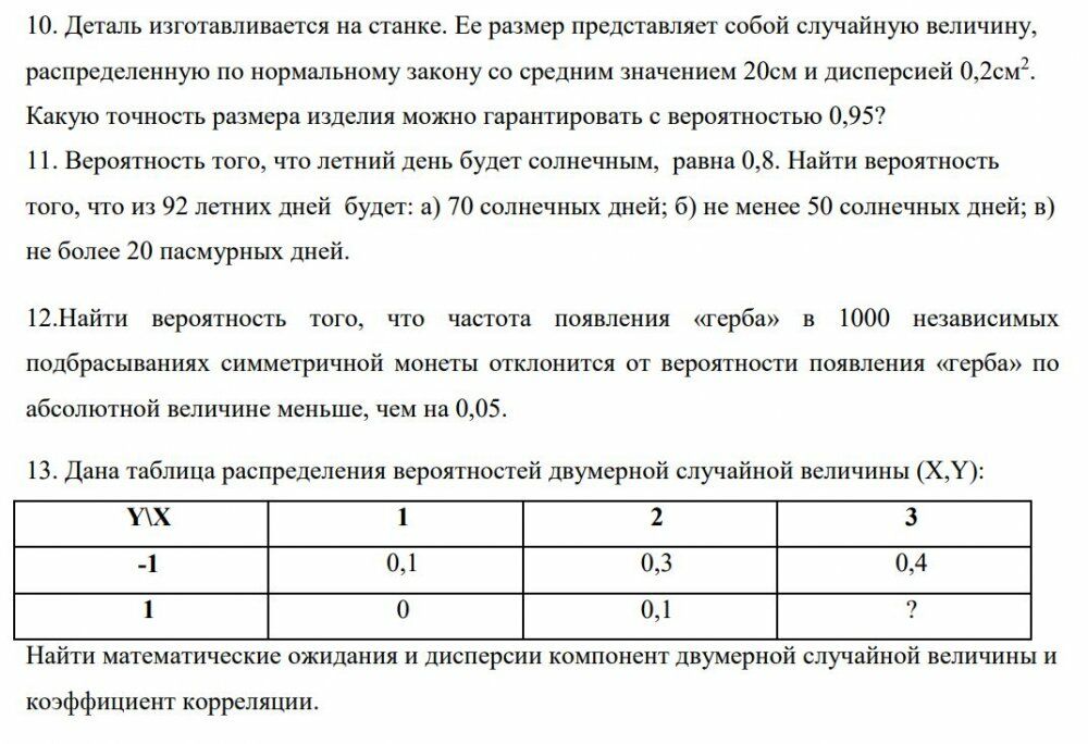 Вариант 11 - ДЗ №2 - Теория вероятностей - Часть 2 «случайные величины» - Задача 10 => 13