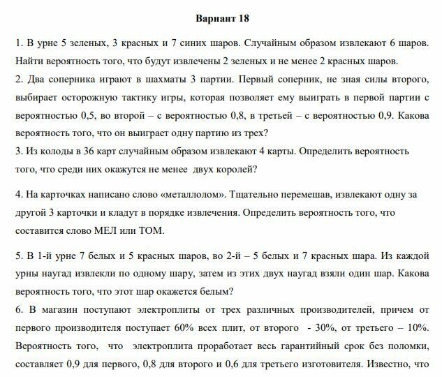 Вариант 18 - ДЗ №1 - Теория вероятностей - 9 Задач - Часть 1 «случайные события»